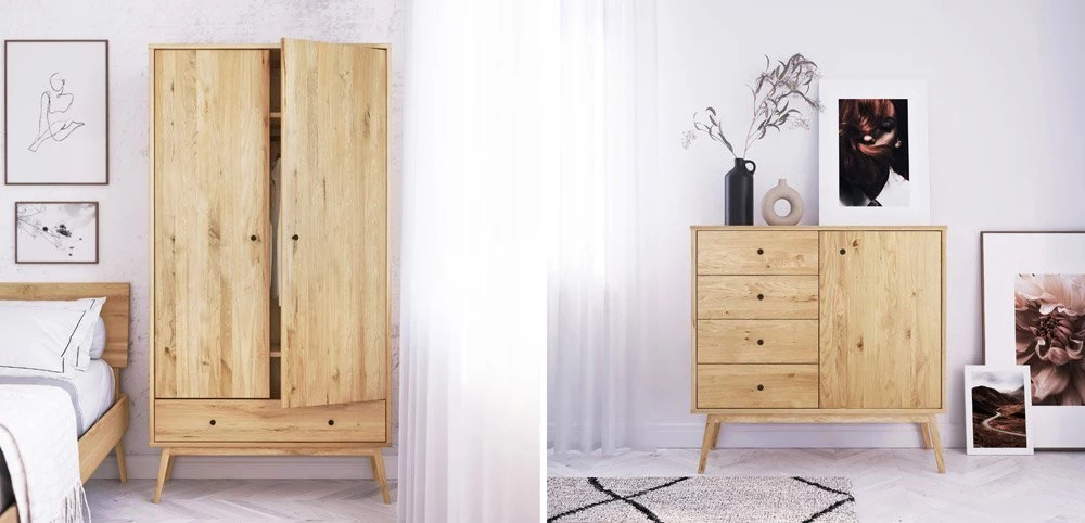 Námi nabízený dřevěný nábytek, díky odolné a spolehlivé konstrukci, perfektně vyplní prostor v našem okolí. Krása šlechetného dubu, ztvárněna komodou nebo skříní, znamená nejen úsporu místa, ale stane se pevným bodem našeho domova, kterému propůjčí přirozený ráz. Postele a noční stolky díky perfektnímu provedení způsobí, že se spánek stane skutečnou regenerací sil, připomínající spánek v lůně přírody.